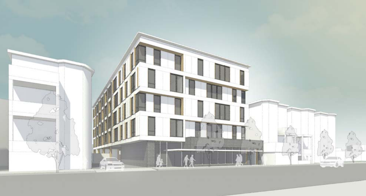 This mixed-use building across from the Ashmont rapid transit station is currently under construction. It will feature: